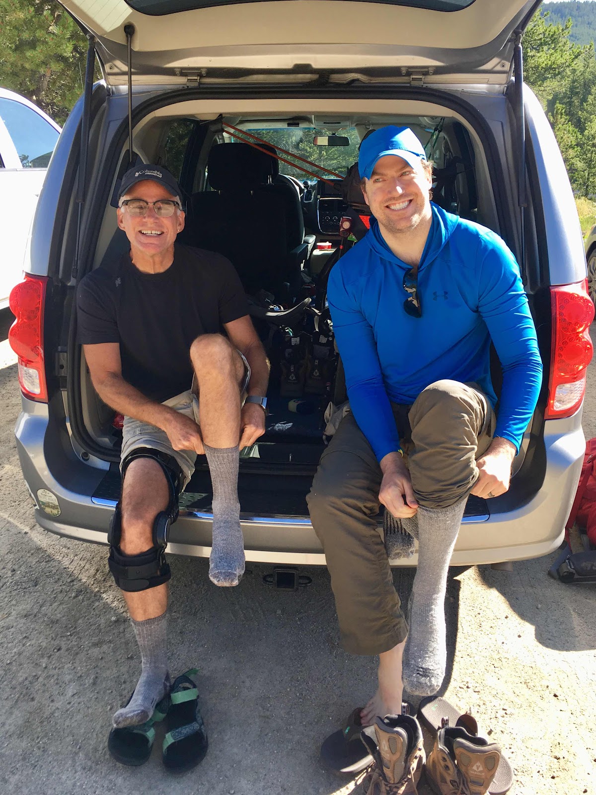 I’ve wanted to go backpacking with my son Ryan for many years but he’s been busy getting to know Colorado with his wife Mattie since they moved out here in 2008. But with Mattie now focused on studying all weekend long since she’s back in school I thought I’d steal him for a 3 day trip in the Rockies. So here we are at Tennessee Pass getting on our hiking boots in the back of our magic minivan that brought us up here.