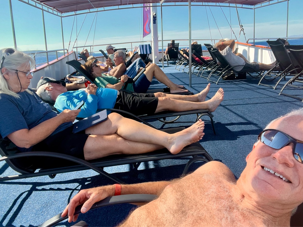 After our ride followed by a 3 course lunch, many of us gather like fat seals on the beach to bask and nap under the sun.